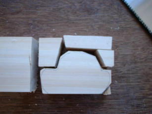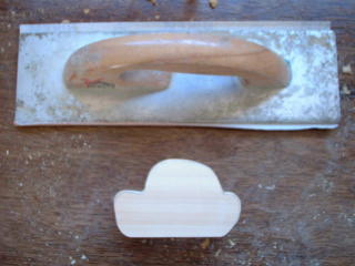 ノコギリで大体の形に 切っていきます。 普通なら電動の糸ノコを使うのでしょうが、小学校時代に怖い目に遭っている私は使いません。 それ以前に所有しておりません。 (^^;)アブネェ〜カラヨ〜