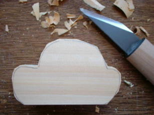小刀でデザインに合わせて少しづつ削っていきます。 たまに指を切って血が...... (T0T) ブゥ〜っと