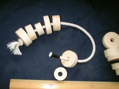 ひもを通す練習が出来る道具を作ってはどうか?と言う ご意見をいただき、早速作ってみました。 丸い部品12個、 ひもの長さ 約40センチ。 部品個数、ひもの長さなど御相談にお応えしますので お問い合わせください。